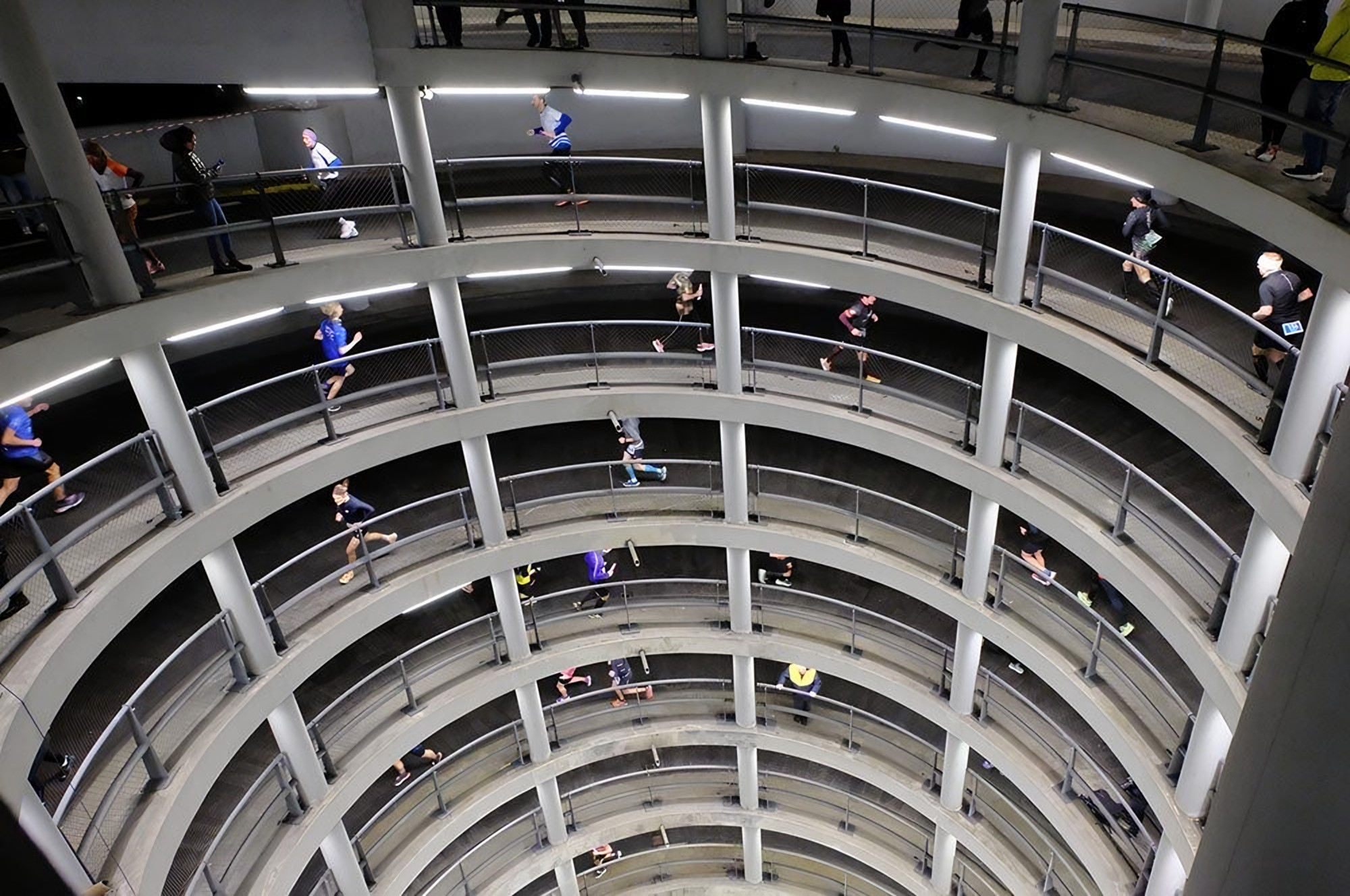 Die Strecke führt durch das Donau Einkaufszentrum (2 Ebenen) und die Parkhausspindel (6 Ebenen) und beträgt pro Runde ca. 1,6 km. Einzelläufer haben 13 Runden bei +/- 858 Höhenmetern zu absolvieren, in Summe also 21 km, was einem Halbmarathon entspricht. Die Staffelläufer laufen 2 Stunden, unabhängig der Rundenzahl.